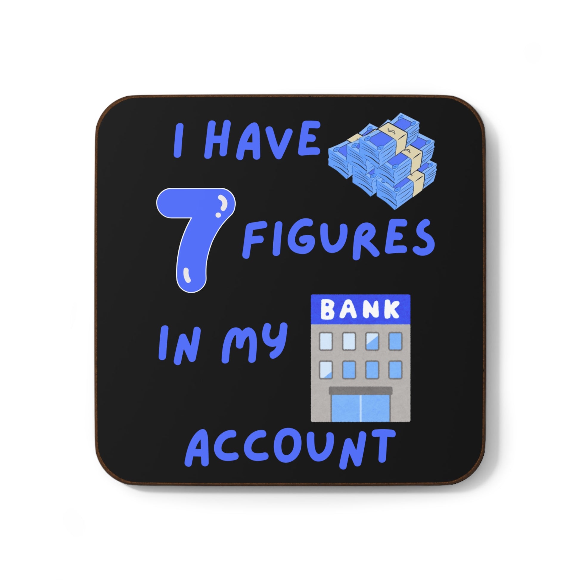 "I Have 7 Figures in my Bank Account" (Blue/Black) - Hardboard Back Coaster