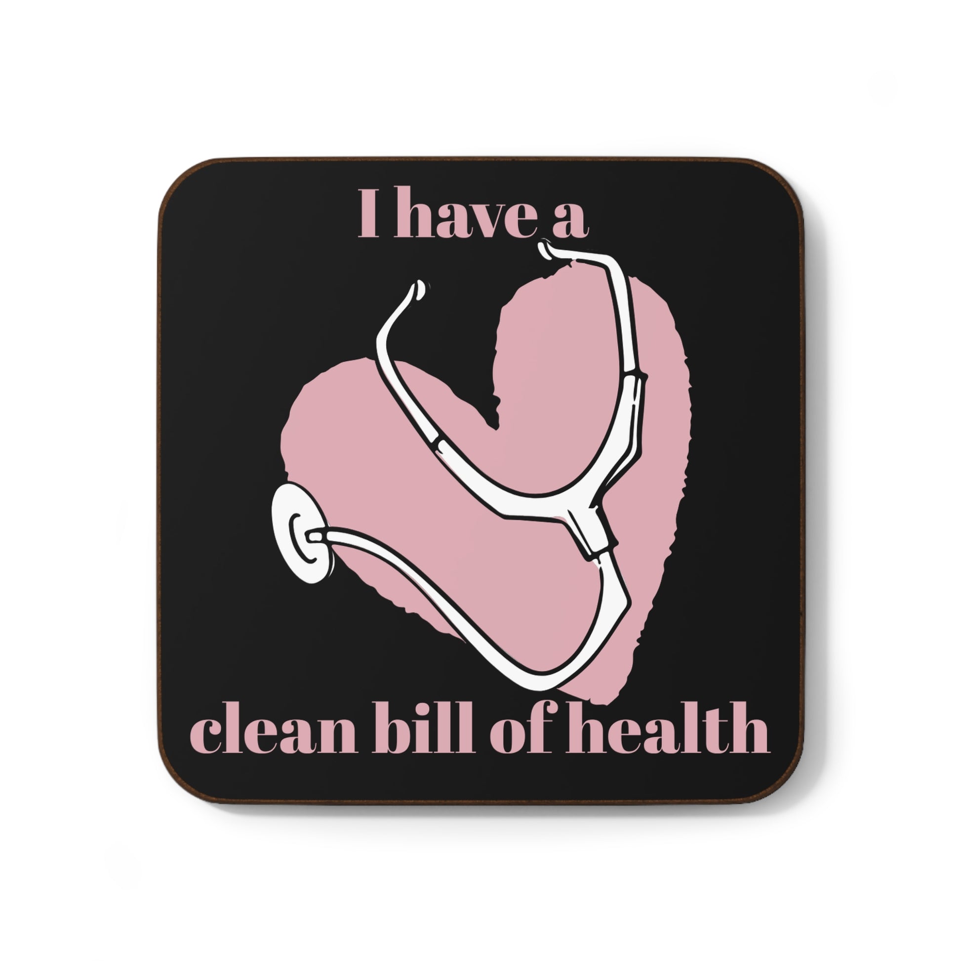 "I Have a Clean Bill of Health" (Pink/Black) -Hardboard Back Coaster