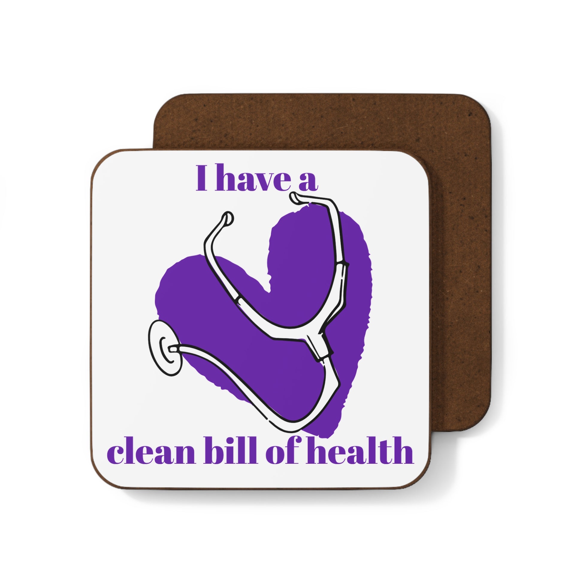 "I Have a Clean Bill of Health" (Purple) - Hardboard Back Coaster