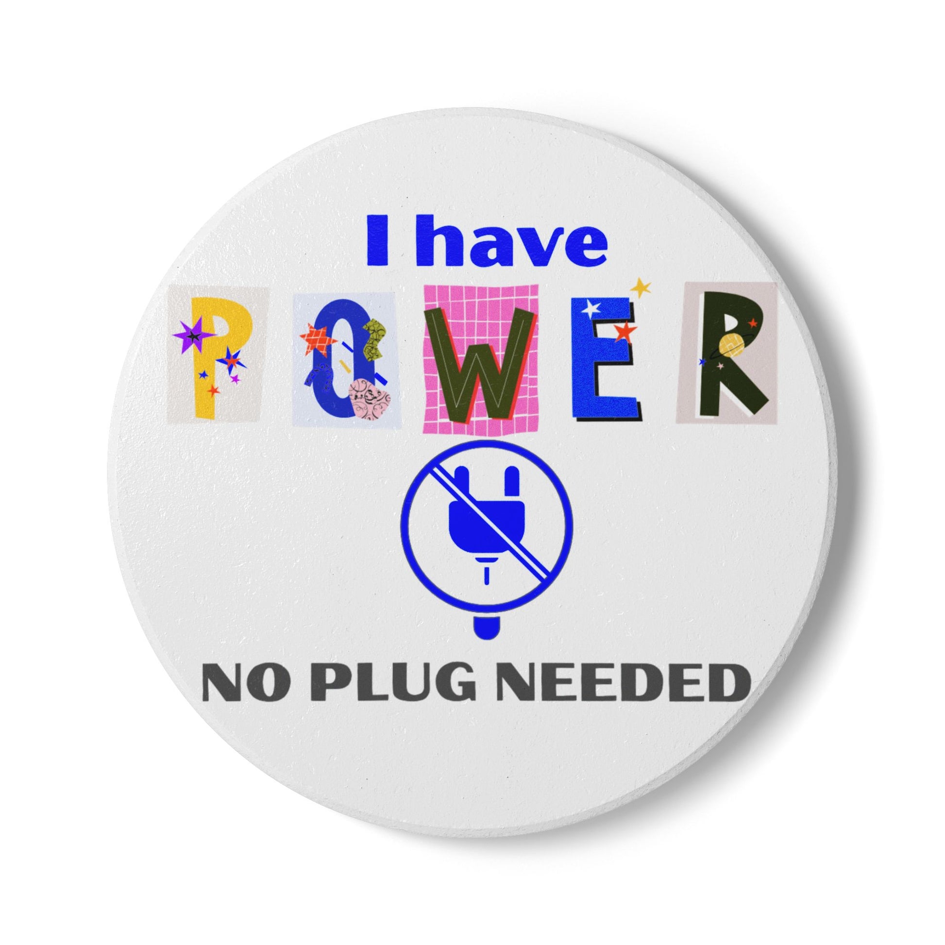 "I Have POWER - No Plug Needed" - Inspirational Ceramic Coaster - Fun Decor for Home & Office